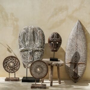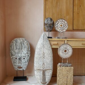 De Barong is een mythisch figuur half leeuw en half draak en speelt de held in de bekende Barong dans. Deze dans wordt al eeuwenlang op het godeneiland Bali opgevoerd. Dit traditionele masker wordt geleverd op een standaard en is prachtig decoratief in de woonkamer of hal. De maskers worden handgemaakt en beschilderd. Met de hand kerven ze deze maskers uit hout. Het formaat van het masker geeft dit bohemian beeld een wow-factor voor je interieur. Elke persoon die een kamer met dit beeld binnenloopt, zal verrast zijn en aangetrokken worden door deze verbazingwekkende kunst. Je kunt het ook perfect combineren met de andere houten handgemaakte standaards en beelden uit onze collectie.