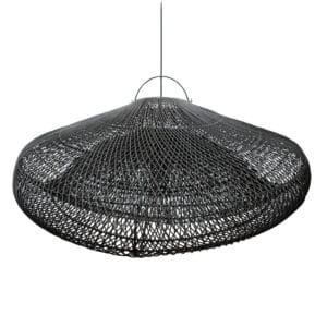 De lamp is geïnspireerd op de dreigende, donkere wolken die zich kunnen opstapelen boven Mount Batur – een actieve vulkaan en spirituele plek op het Indonesische eiland Bali. Dit zie je niet alleen terug in de vorm, maar ook in de diepe zwarte kleur van het gevlochten rotan. Het resultaat is een uniek, expressief ontwerp dat kracht en rust tegelijkertijd uitstraalt.