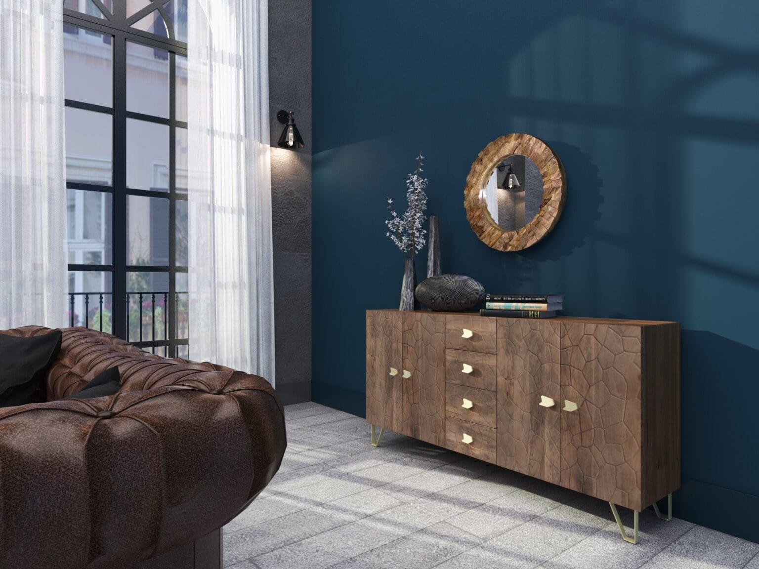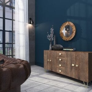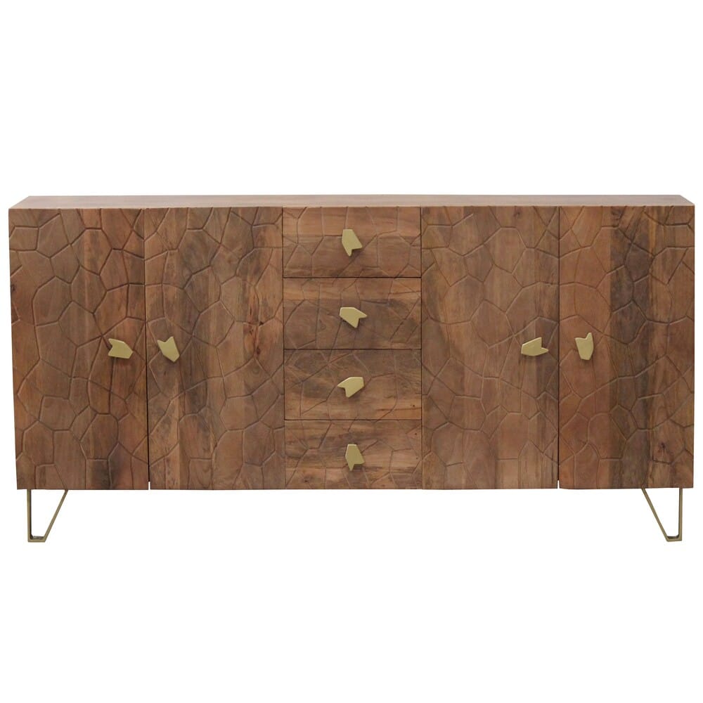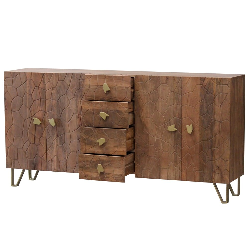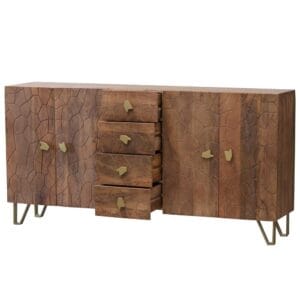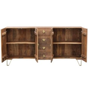 De gevel van het dressoir is uitgevoerd in prachtig reliëf, minutieus uit hout gesneden door bekwame vaklieden. Dit subtiele, maar indrukwekkende detail getuigt van uitmuntend Japans handwerk en tilt het meubel naar een hoger niveau, passend in uiteenlopende woonstijlen – van minimalistisch modern tot warm en eclectisch.