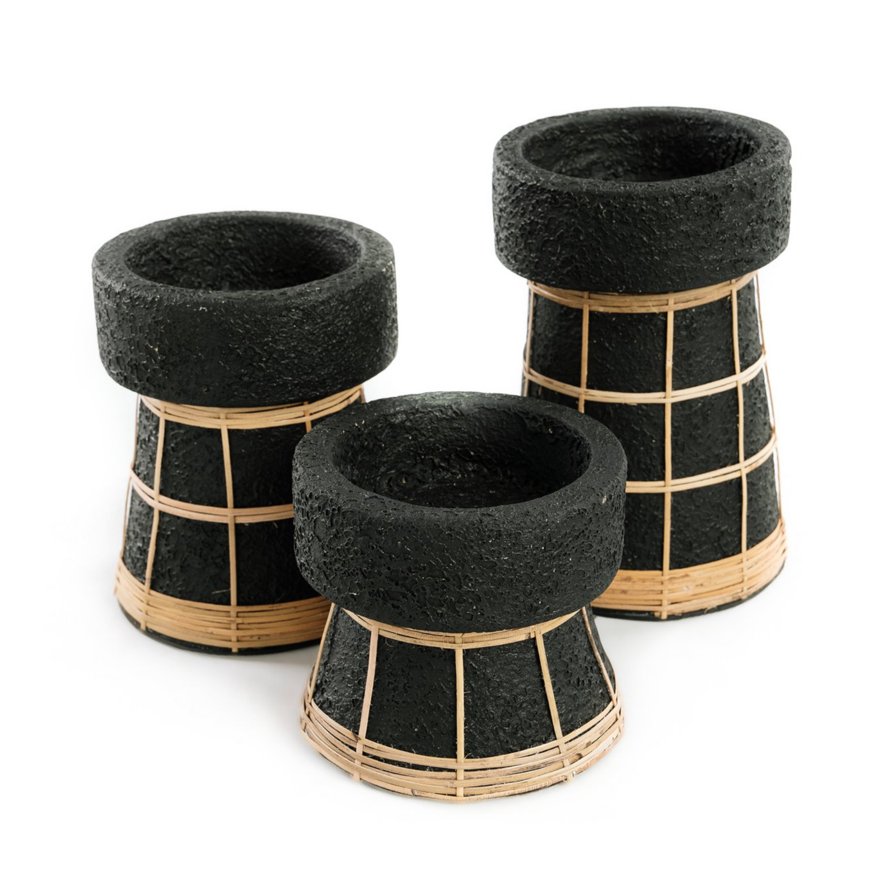 Nog niet overtuigd? Het is tijd om je (salon)tafel opnieuw te decoreren! Of het nu winter of zomer is, een paar mooie kandelaars zorgen meteen voor gezellige gevoelens. De Serene kandelaars zijn gemaakt van prachtig gestructureerd terracotta, in betongrijs of diepzwart, en zijn verkrijgbaar in drie maten per kleur. Ze zijn afgewerkt met een zorgvuldig vervaardigd rotanraster, waardoor het terracotta wordt verrijkt met enkele natuurlijke tinten. Voel je vrij om maten en kleuren te mixen en matchen!