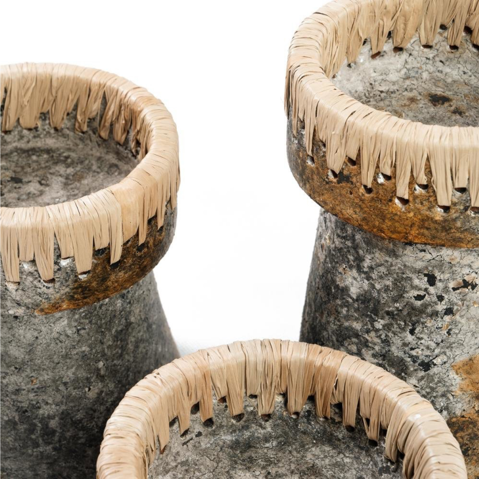 Er zijn drie maten – door ze te combineren creëer je een prachtige look op je tafel, console of zelfs de rand van je bad of zwembad. Deze prachtige kaarthouders zijn ook perfect te combineren met onze onze vazen van het zelfde terracotta en raffia materiaal.